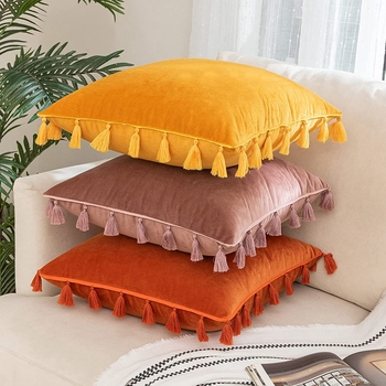 مخملي ناعم مربع ديكور غطاء وسادة رمي شرابات تقنية منسوجة بوهو لهجة حالة وسادة للاستخدام المنزلي-للسيارة الأريكة